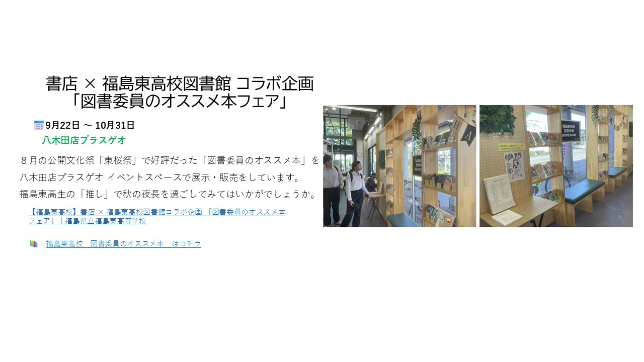 書店×福島東高校図書館 コラボ企画「図書委員のオススメ本フェア」