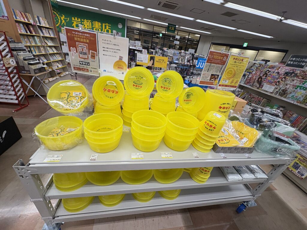 黄色い桶に赤いロゴというシンプルで目立つ配色。