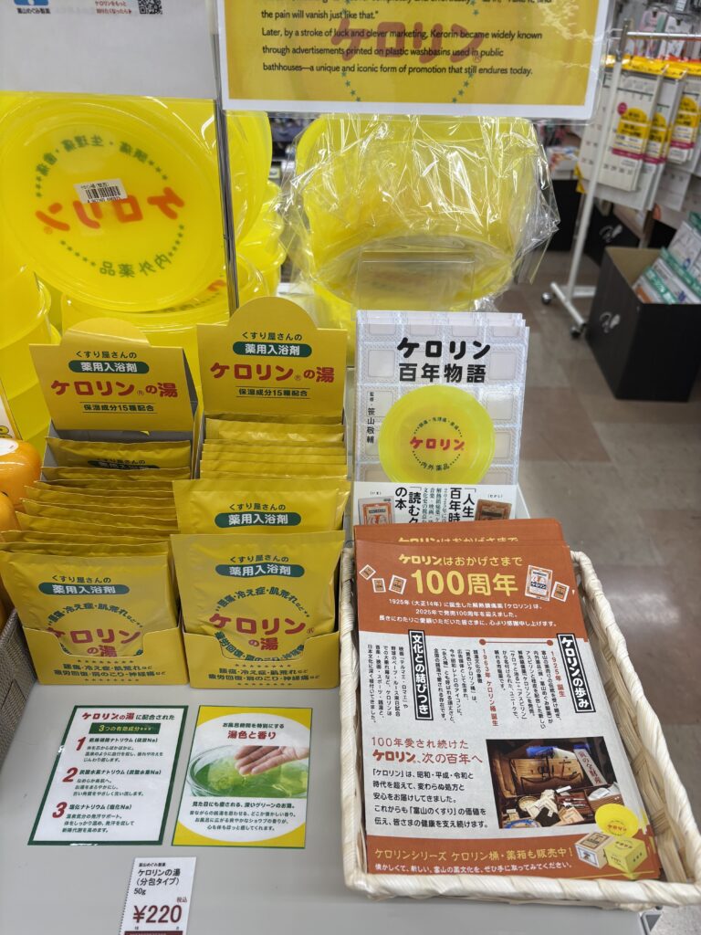 薬の広告から始まり、今では「銭湯といえばケロリン」と言われるほど定着しています。