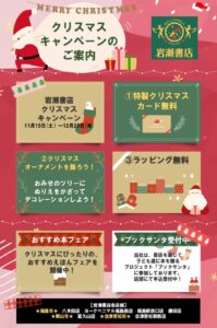 ①特製クリスマスカード無料 ②クリスマスオーナメントを飾ろう! おみせのツリーに…