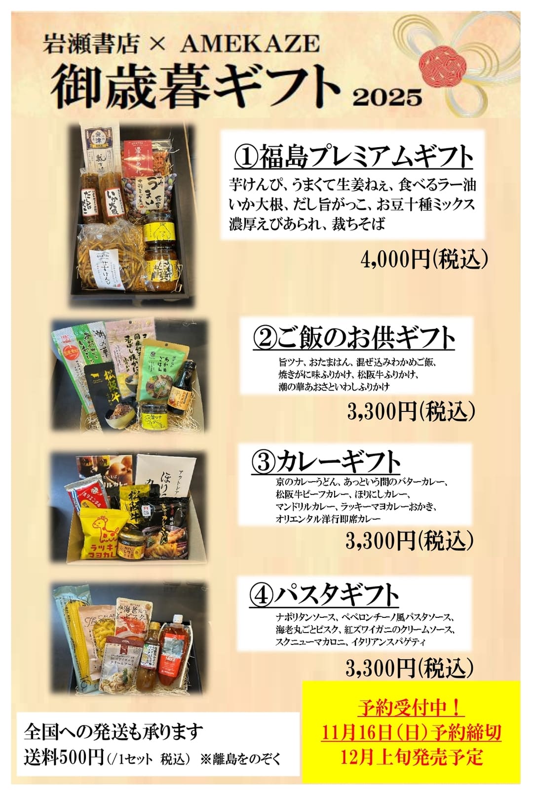 お歳暮ギフト予約受付中!お歳暮ギフト予約受付中! 11月16日(日)予約締切 12月上旬発売予定10月31日〜11月16日岩瀬書店全店